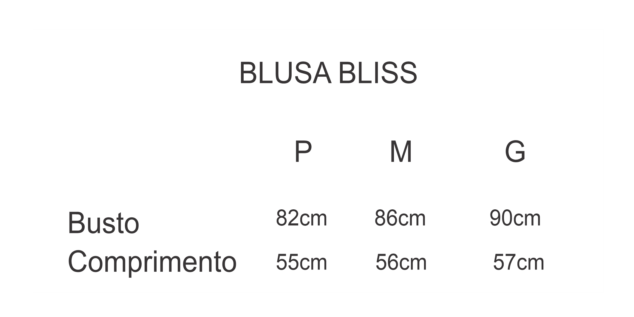 Apresentamos a Blusa Bliss, feita em poliamida de alta qualidade com modelagem que valoriza suas curvas. Seu tecido é leve, respirável, tem um caimento perfeito, o que traz conforto e estilo para qualquer ocasião. Versátil e sofisticada, essa blusa é a escolha perfeita para quem deseja unir beleza e praticidade no dia a dia.